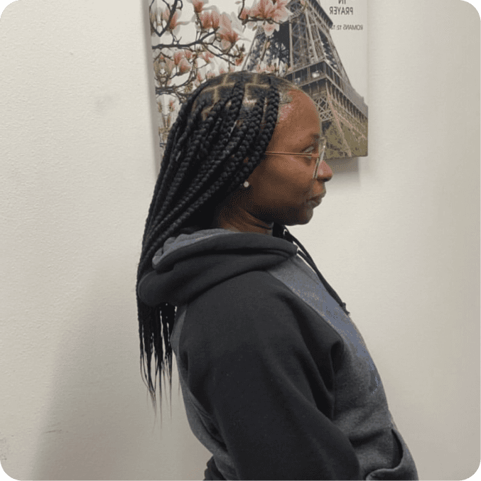 We will give you braids that turn heads, not ones that leave your scalp sore for days. We specialize in creating neat, lightweight, and protective braid styles that look stunning and feel comfortable from day one. No matter the braid style: knotless braids, box braids, feed-in cornrows, or tribal styles, we make every braid fit your face, your lifestyle, and your hair’s natural strength.
